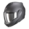 Casco Scorpion Exo-Tech EVO Carbon, con mentonera abatible que se posiciona en la parte trasera del casco.
